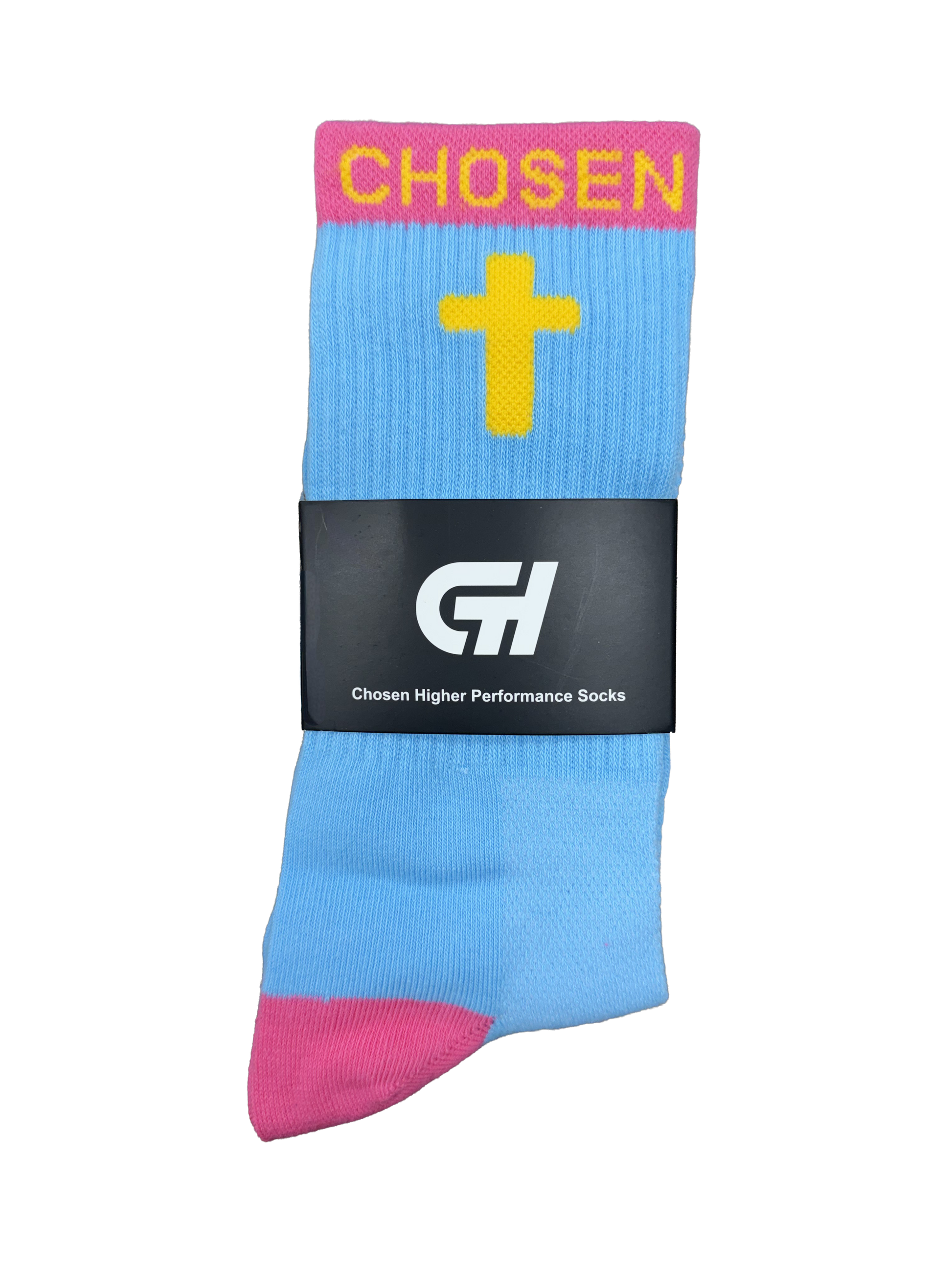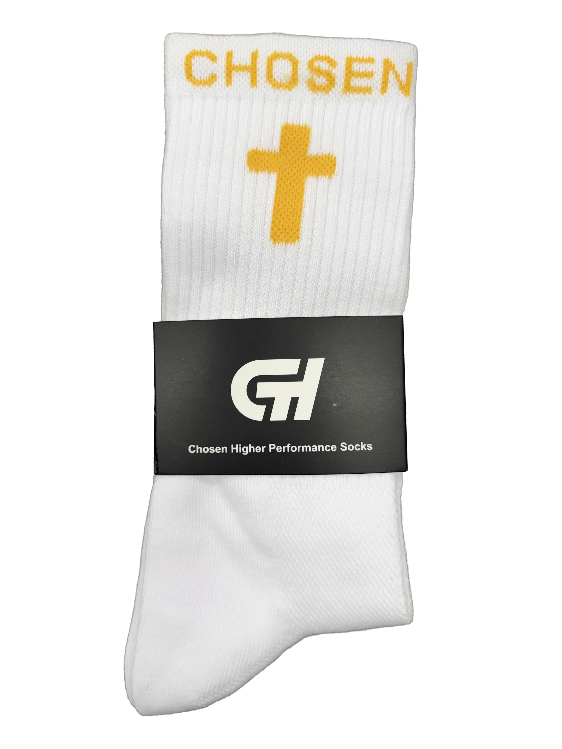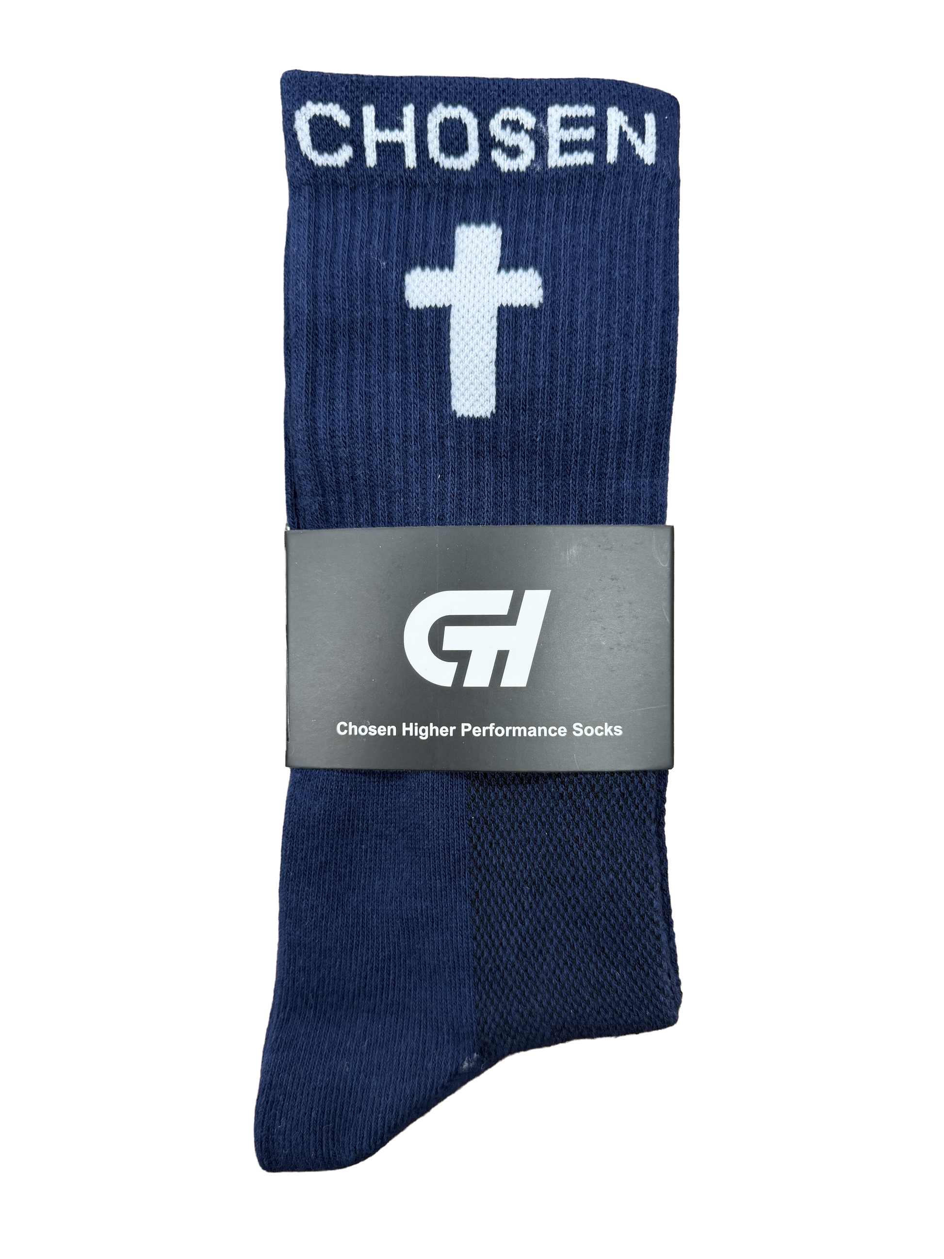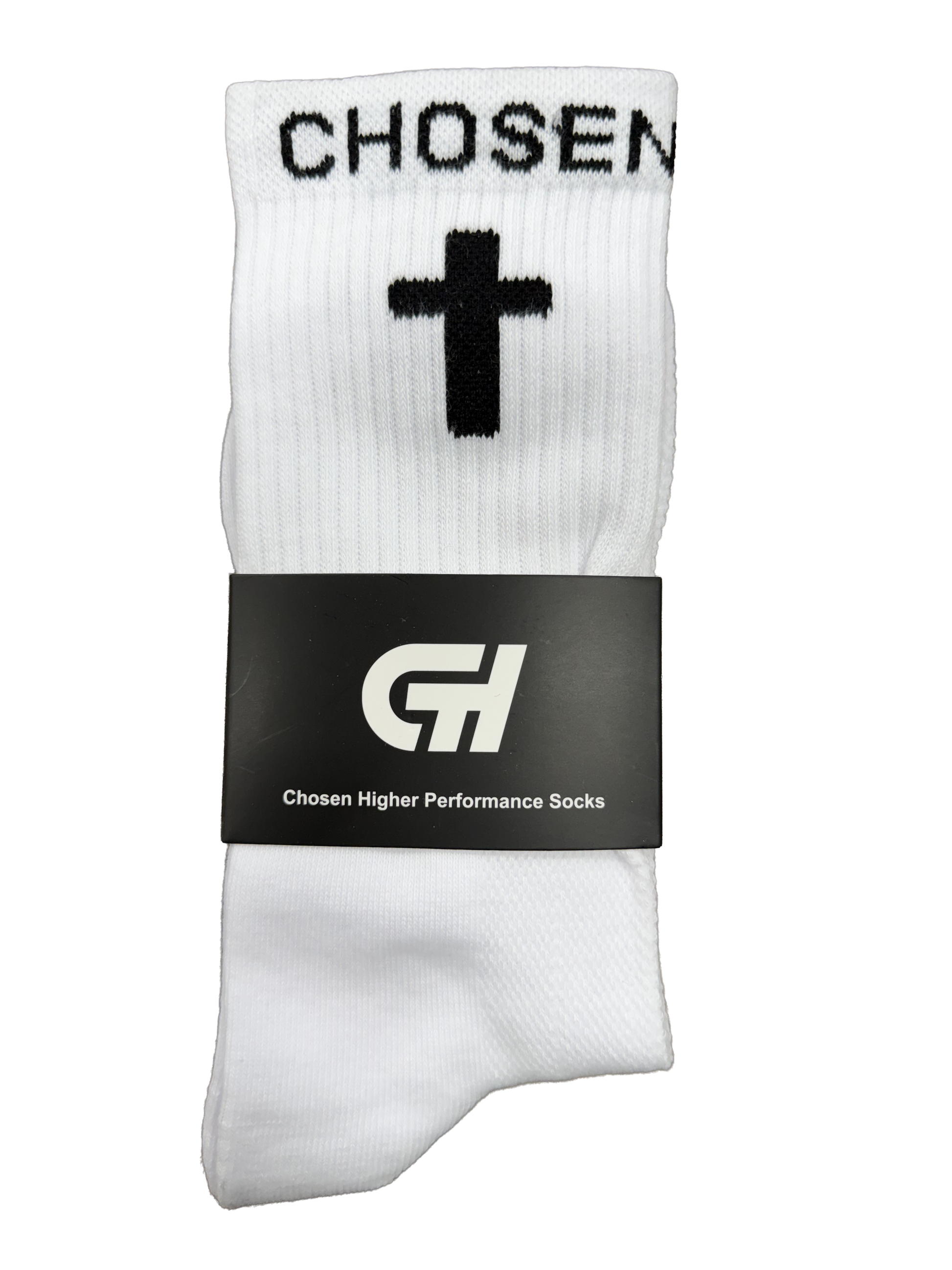 Experience unmatched comfort and performance with our Chosen Higher Performance Socks. Designed for long sessions, these socks are breathable and lightweight, keeping your feet cool and dry no matter how intense the workout. Featuring the cross design so that athletes and others can represent their faith with every step, training session, and wrestling match.