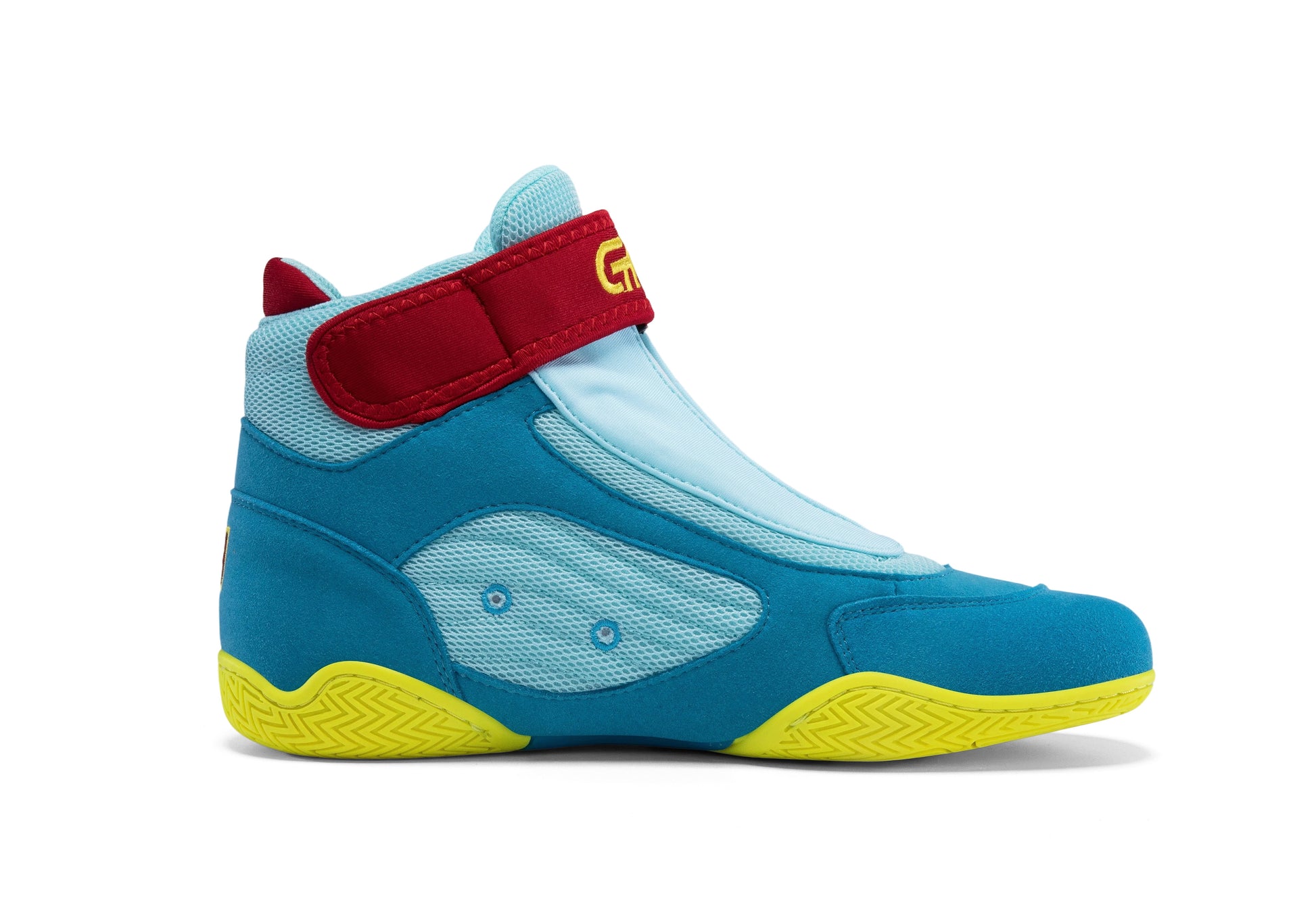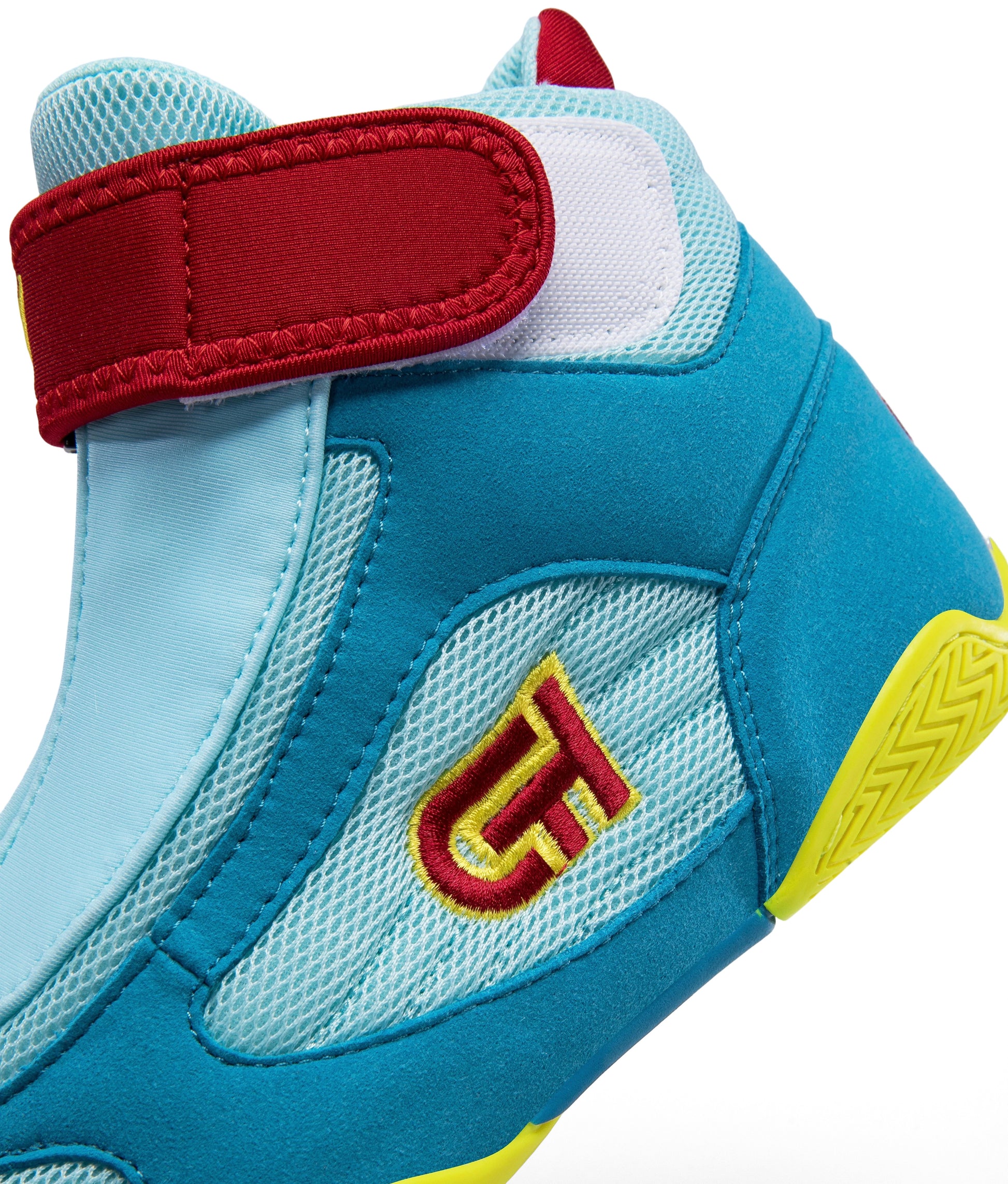 Legacy is the XXVI colorway built for wrestlers who understand the history of the sport — and want to carry it forward. This design pulls from some of the most iconic wrestling shoe colorways ever created: hot pink, baby blue, light blue, two shades of blue, and yellow. These tones defined eras, inspired generations, and became staples in wrestling culture.